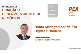 No próximo dia 17 de Abril, realizar-se-á, pelas 10h00, um seminário subordinado ao tema "Brand Management na Era Digital e Humana" inserido no âmbito do módulo de Gestão Estratégica de Marca, da Pós-graduação em Criação e Desenvolvimento de Negócios.