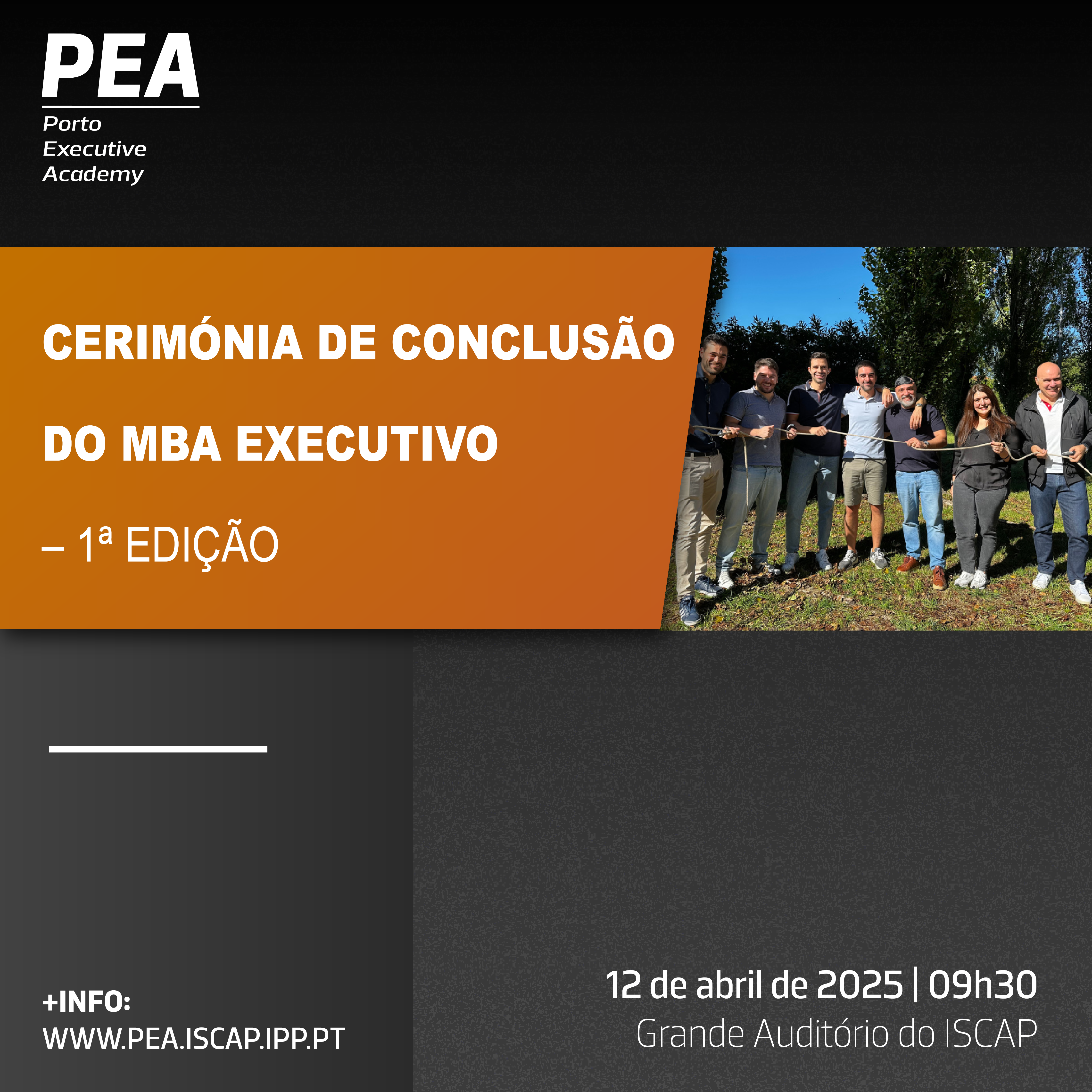 No próximo dia 12 de abril de 2025, pelas 09h30, realizar-se-á no Grande Auditório do ISCAP a Cerimónia de Conclusão do MBA Executivo.