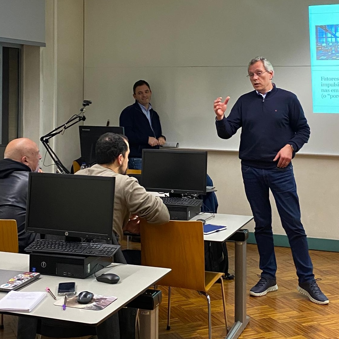 A sessão centrou-se na análise pragmática de como a IA se tornou o eixo central da transformação digital contemporânea, influenciando desde a comunicação estratégica até à análise preditiva de dados. Durante o evento, foram discutidos os desafios da implementação tecnológica e a urgência de uma liderança capacitada para integrar ferramentas inteligentes nos processos de decisão, proporcionando aos alunos e participantes uma visão holística e atualizada do mercado.