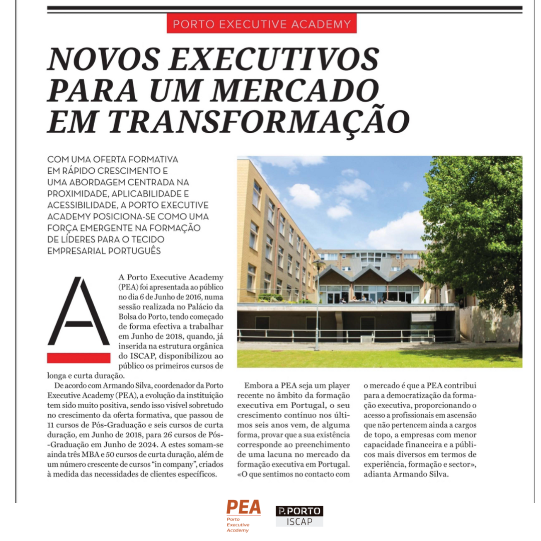 A Porto Executive Academy do ISCAP tem sido encarada como um player complementar, pragmático e regionalmente relevante no universo das escolas de executivos em Portugal, apresentando uma proposta de valor centrada em três vetores essenciais: proximidade, aplicabilidade e acessibilidade. Este foco torna-a uma «peça importante num sistema formativo mais inclusivo e alinhado com as necessidades reais do tecido empresarial português», sublinha o mesmo responsável.