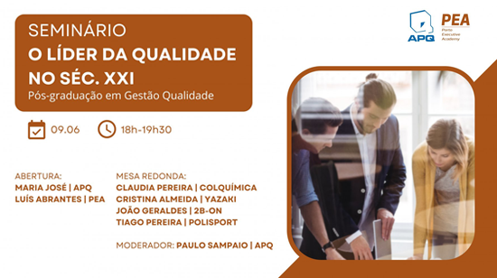 No âmbito da primeira edição da Pós-Graduação em Gestão da Qualidade (Parceria APQ – PEA – IPP), a Comissão Científica está a dinamizar um seminário final para os estudantes envolvidos, alargado a todos os associados da APQ.